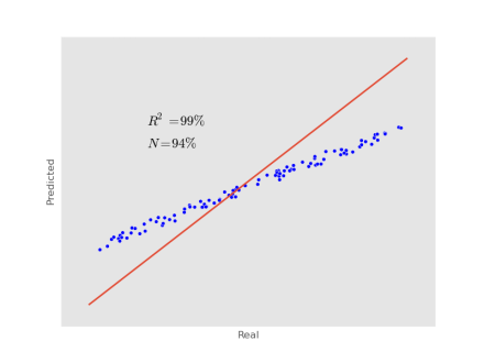 In all of these, the R-squared is excellent, but I think it is overselling how good the prediction is, whilst N is more honest.